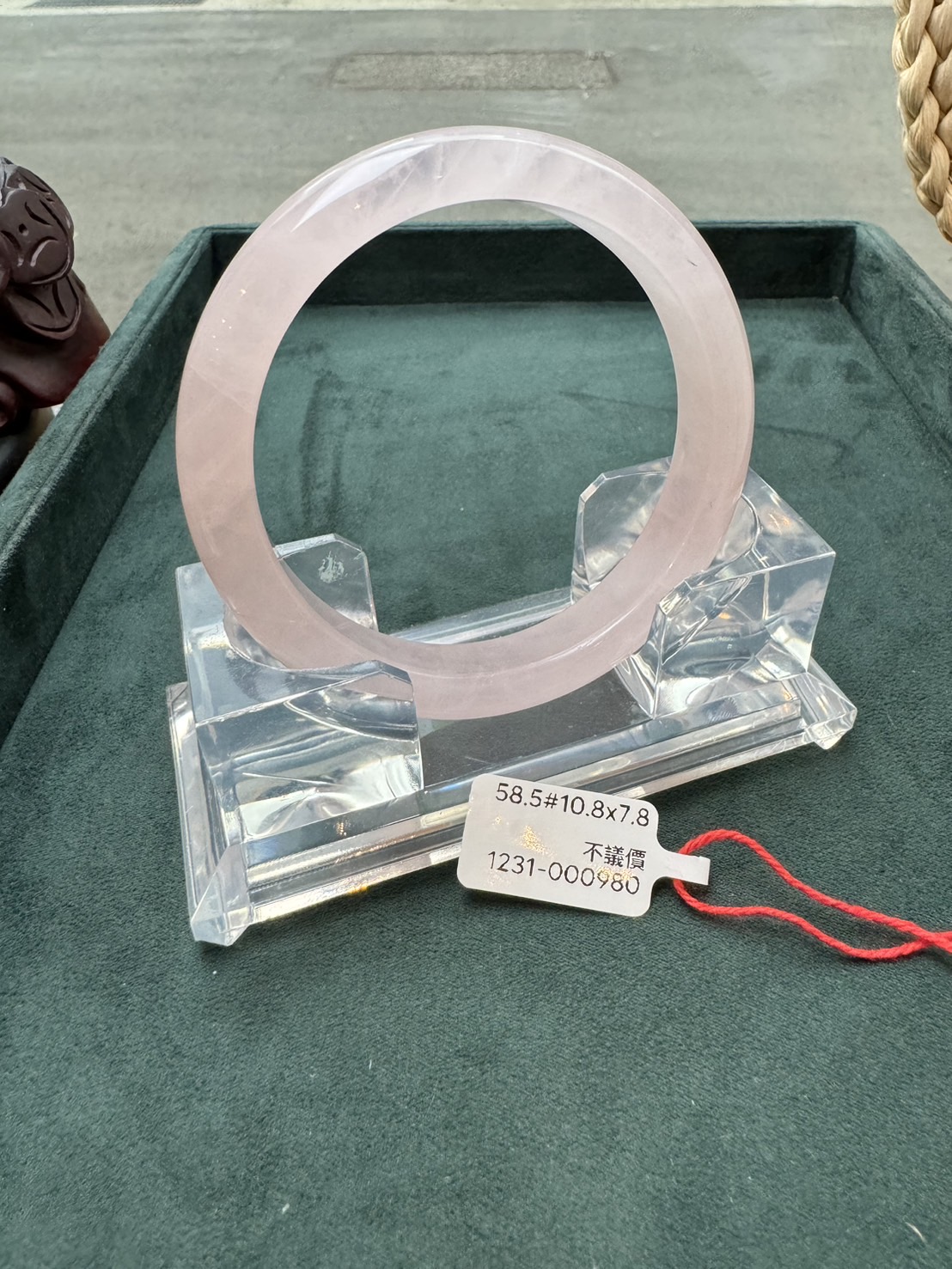 粉晶手鐲,圈口58.5,條寬約10.8mm,條厚7.8mm 天然水晶手鐲,會有天然石紋